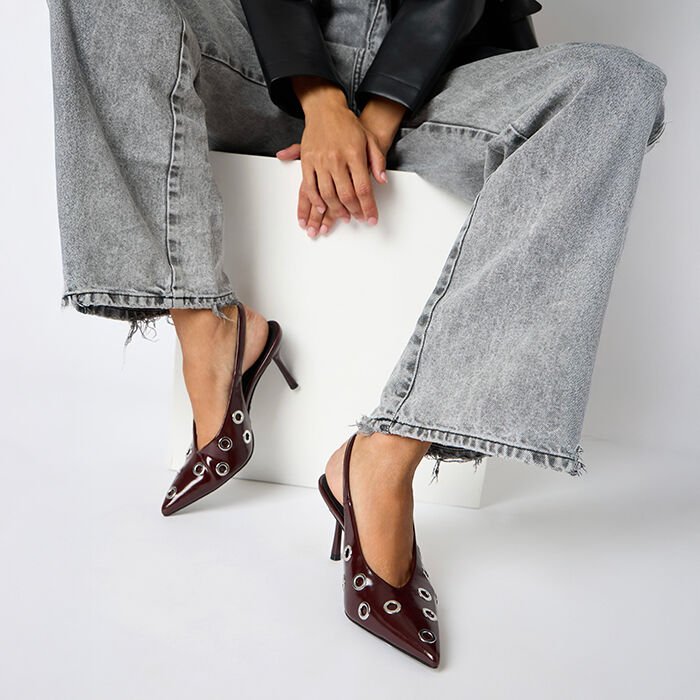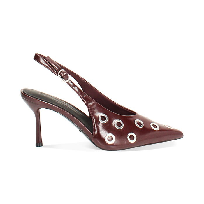 Salón destalonado burdeos con tacón de 7,95 cm, diseñado para ofrecer una elegancia refinada con un toque contemporáneo. El color burdeos aporta profundidad y sofisticación, ideal para realzar tanto looks formales como estilismos más actuales.
